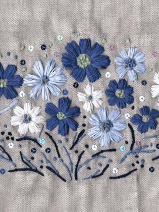 マーガレットをモチーフにホビーラホビーレのオリジナルの夏糸マーサを使い仕上げるキットの図案。